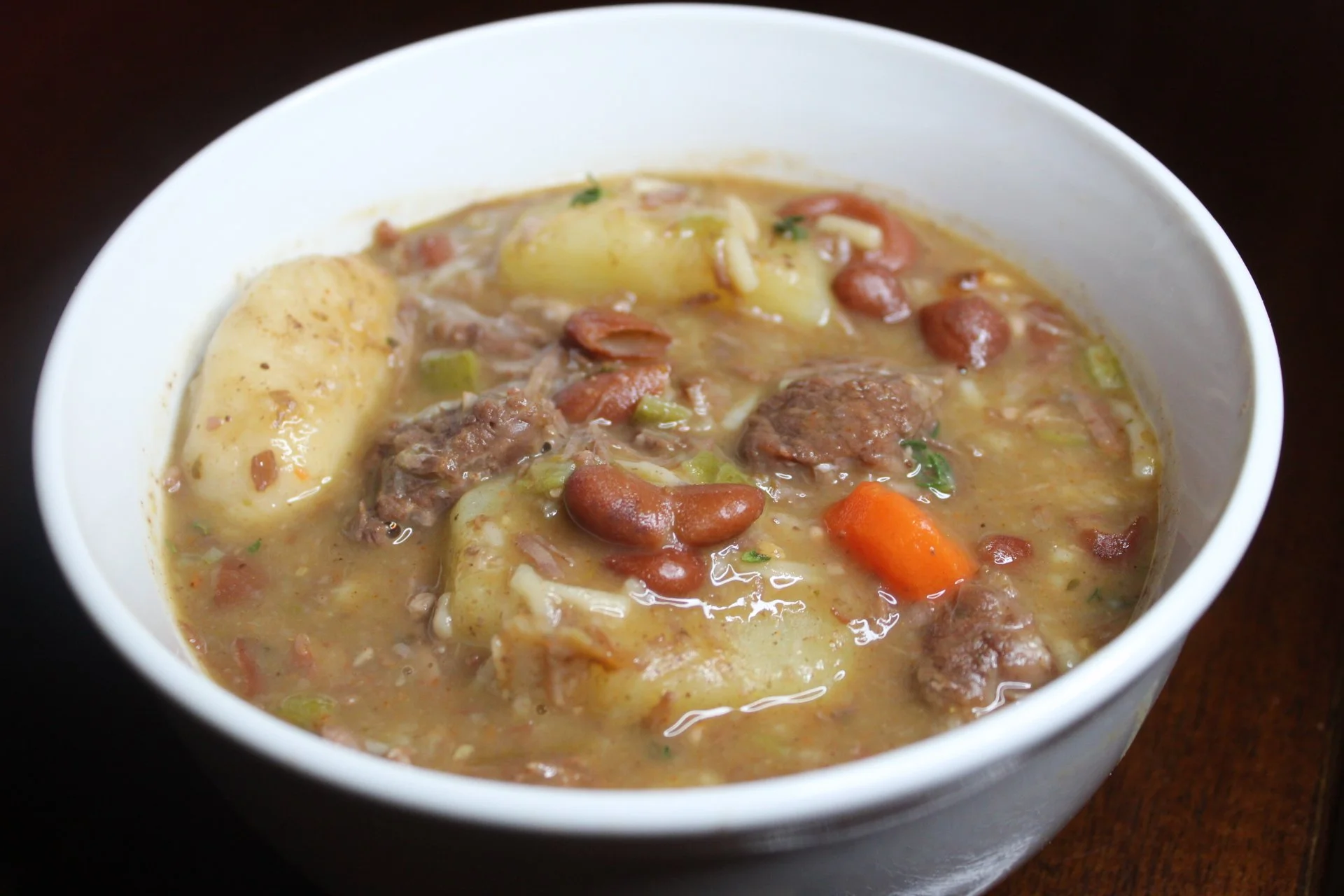 Made with potatoes and bell peppers, served with rice & peas or white rice, cabbage, and sweet plantains