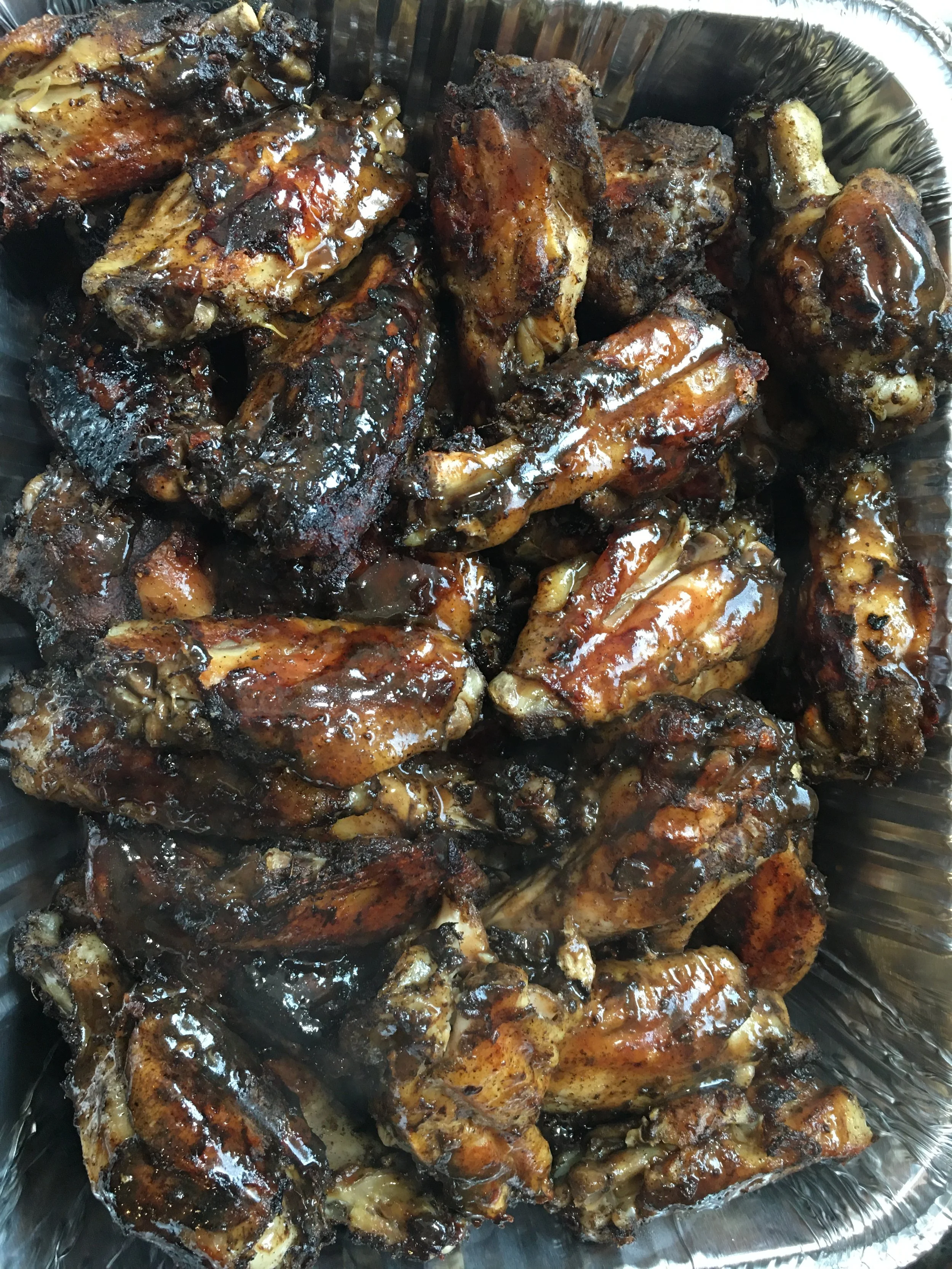 Glazed with a sweet and spicy jerk sauce, w/your choice of mild or spicy hot Choice of 10/20/50 Wings