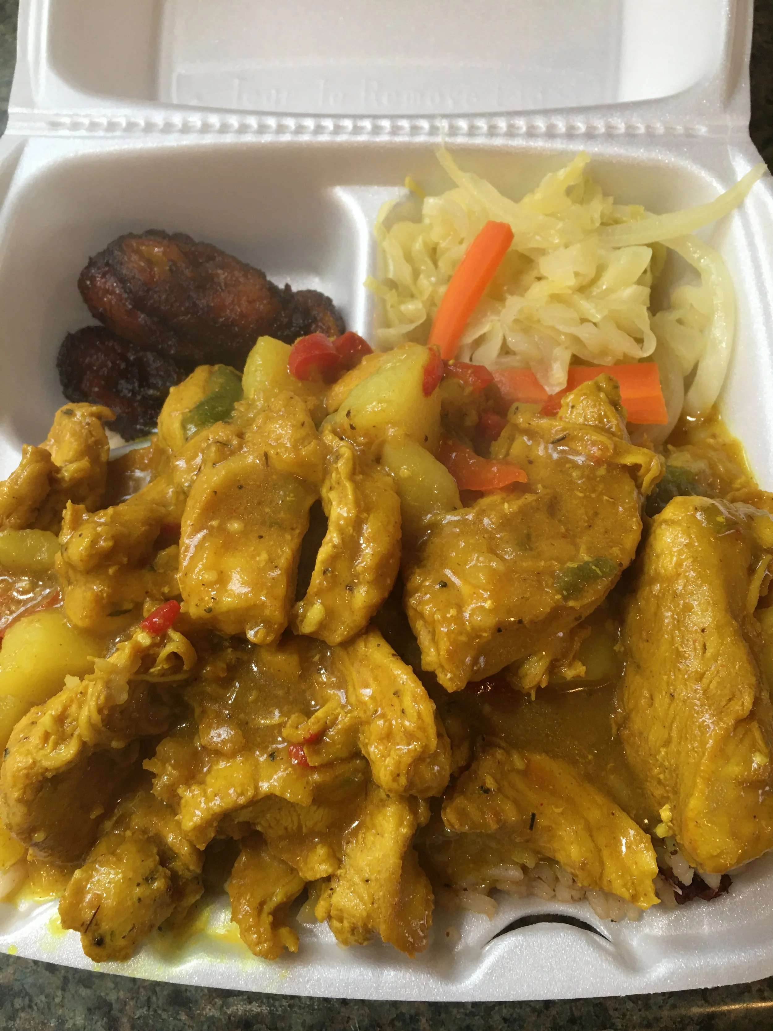 Served w/rice & peas or white rice, cabbage, and sweet plantains